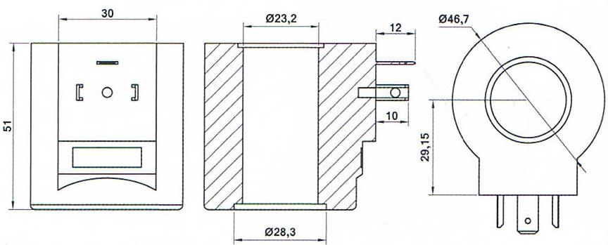 This φ23mm x 46.7mm x 51mm hydraulic solneoid coil is applied in Yuken DSG Series Hydraulic Directional Valves. Hydraulic solenoid valves are components used in hydraulic transmissions to control fluid pressure, flow, and direction. The pressure control valve is called a pressure control valve, the flow control valve is called a flow control valve, and the directional control valve is called to control the on, off and flow directions. The directional control valve is divided into a one-way valve and a reversing valve according to the purpose. The one-way valve only allows the fluid to be unidirectionally connected in the pipeline, and the reverse direction is cut off. Directional valve: change the on-off relationship between different pipelines, according to the working position of the valve core in the valve body, two, three, etc.; according to the number of channels controlled, two-way, three-way, four-way, Five-way, etc.; according to the spool drive mode, manual, motorized, electric, hydraulic, etc.